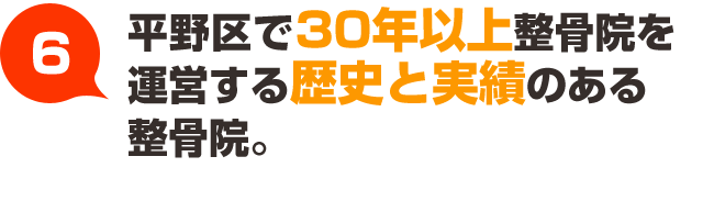 平野区の地域で30年以上整骨院を開院してきた経験と実績を駆使して「できるだけ早い症状改善」をお約束させて頂きます。過去数万人を越える施術実績が当院にはありますが、「どうすれば痛みが早く改善できるのか?」「再発を徹底して予防するためには何が必要なのか?」を常に自問自答してきました。まだすべての答えを導き出すことができておりませんが、「患者様とのコミュニケーション」×「最良な治療法」が痛みの改善には必要不可欠であると考えております。痛みを改善することができても、施術を担当する私達が患者様と真摯に向き合い、密にコミュニケーションを図ることで根本的な痛みの改善を図ることができます。施術実績は平野区でも随一であると自負しておりますので、患者様の期待に応えることができる施術を提供致します。