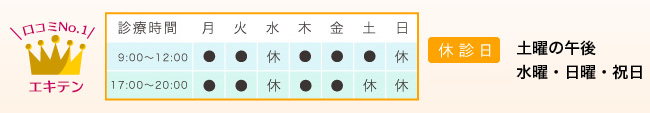 土曜の診療も受け付けておりますので比較的通院しやすい環境かと思います。